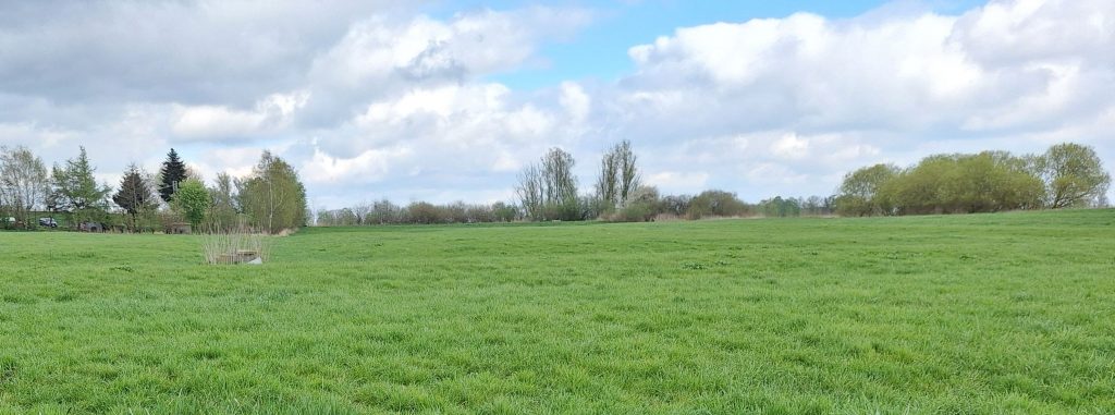 Idyllisch südlich am Stördeich und am ehemaligen Lauf der Schmiedeau gelegen befindet sich unser rund 3 ha großes Grünland-Ökokonto. Hier werden wir im Frühjahr 2026 Grüppen aufweiten und Kleingewässer anlegen.